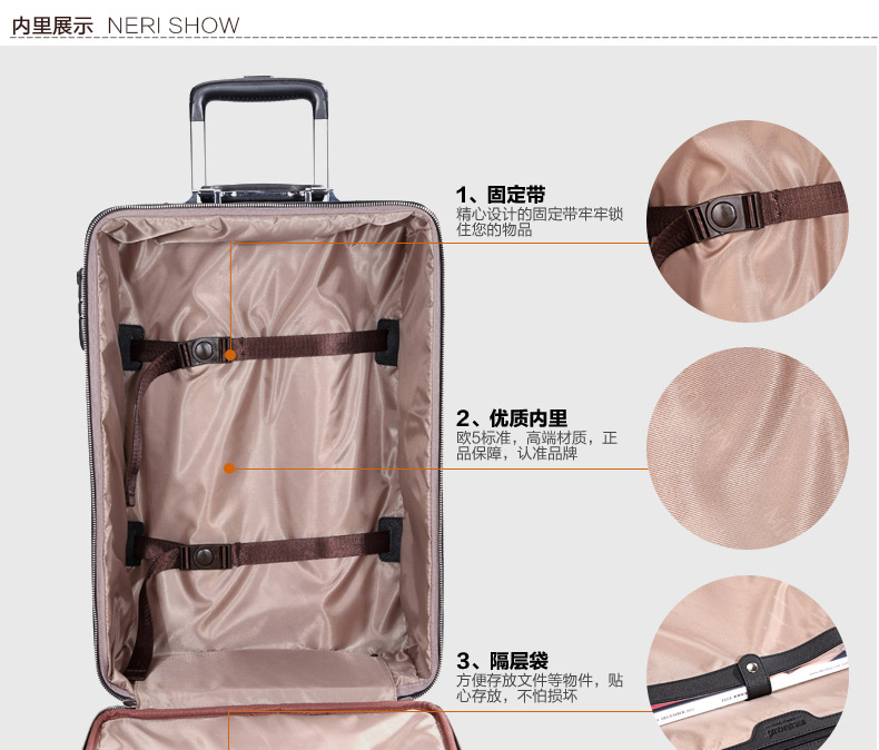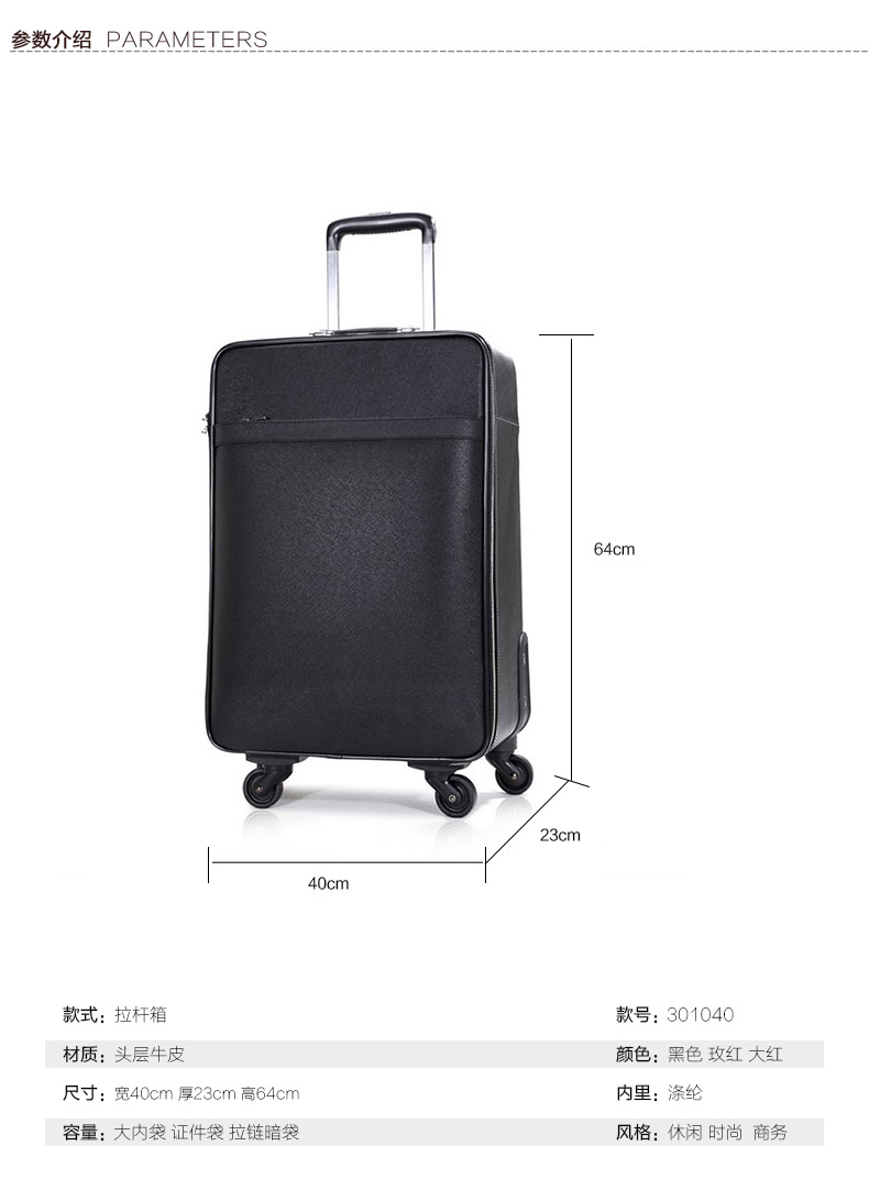 拉桿箱材質:頭層牛皮