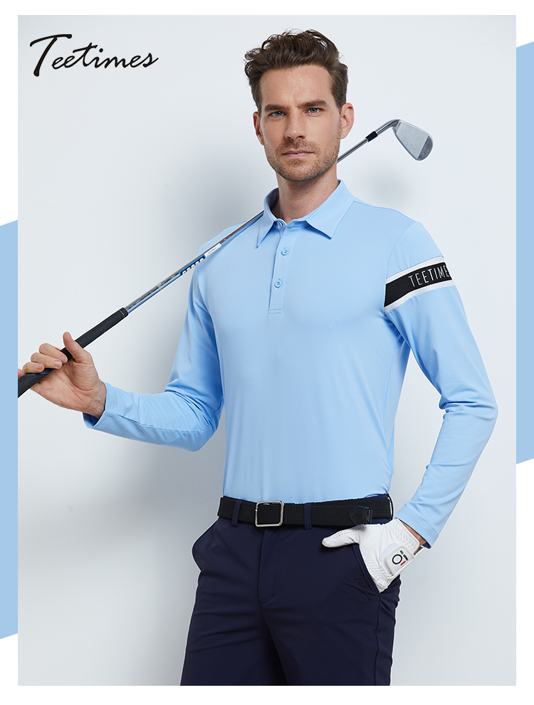 高爾夫服裝男士長袖POLO衫Teetimes衣服T恤運動上衣彈力修身